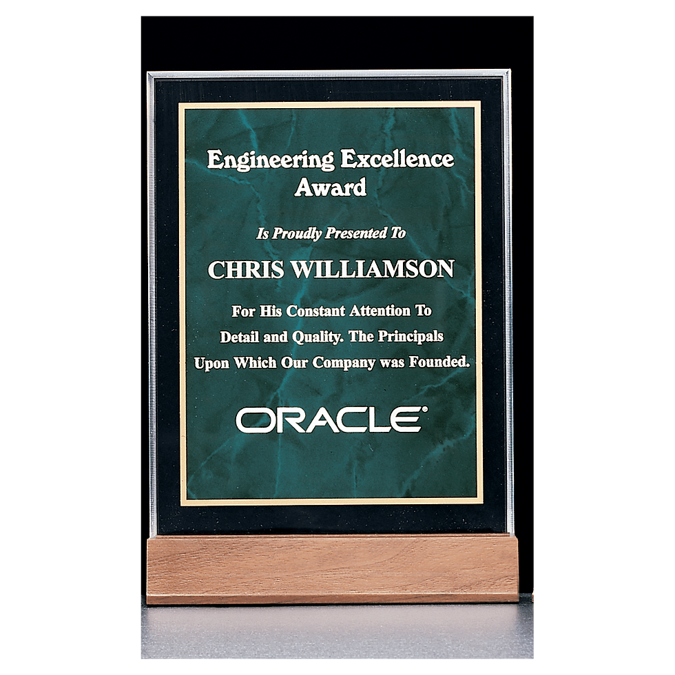 7" x 9 5/8" Sapphire Marble Acrylic Award with American Walnut Base