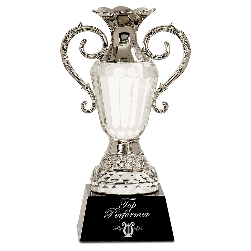 10" Crystal Cup with Silver Metal Handles on Black Pedestal Base