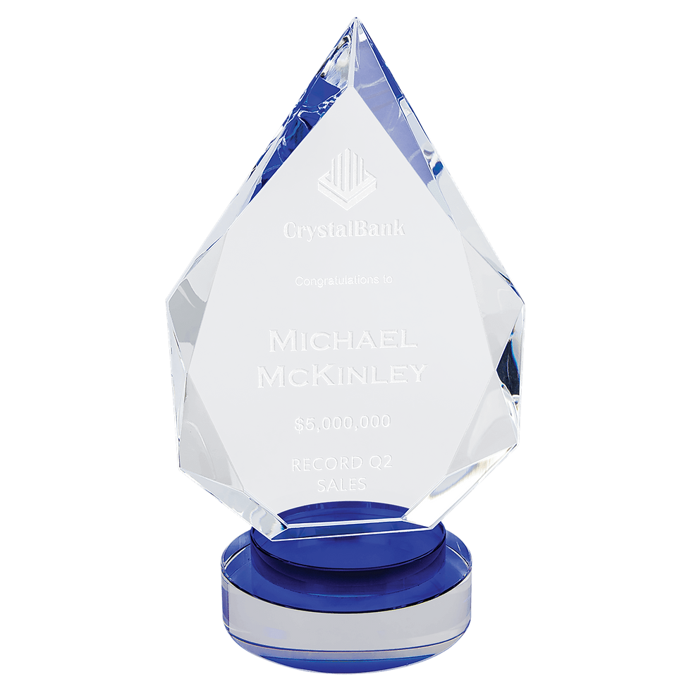 7 3/4" Crystal Diamond on Blue Pedestal Base