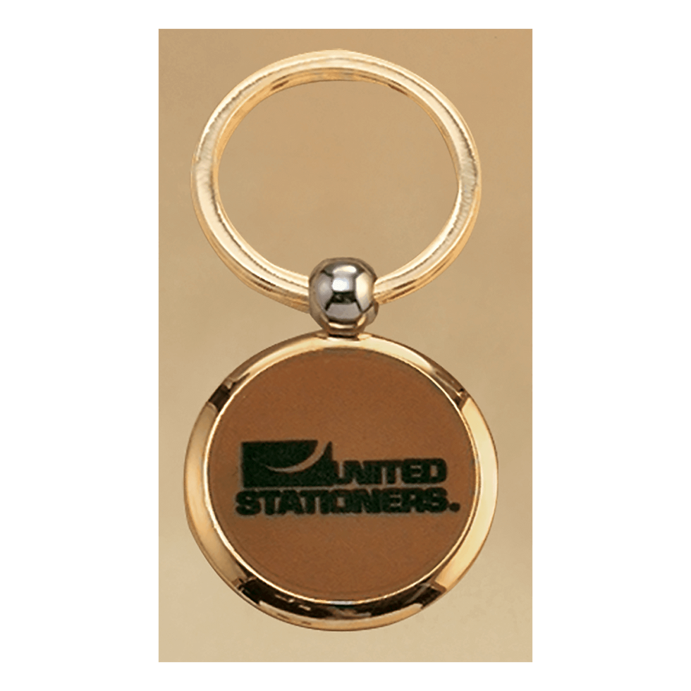 1 1/2" Diameter Gold Key Ring with Leather Front, Brass Back