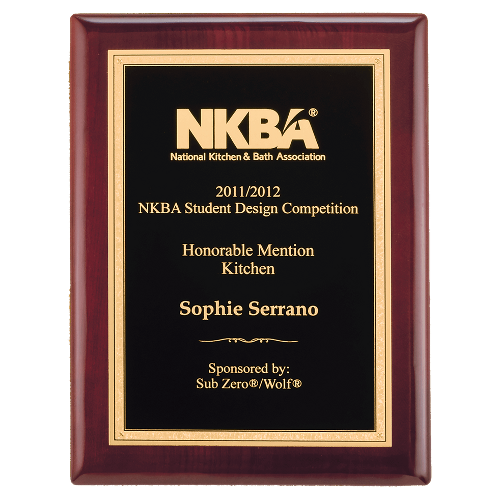 11" x 15" Rosewood Piano Finish Plaque with Metal Gold Sunburst Frame Casti