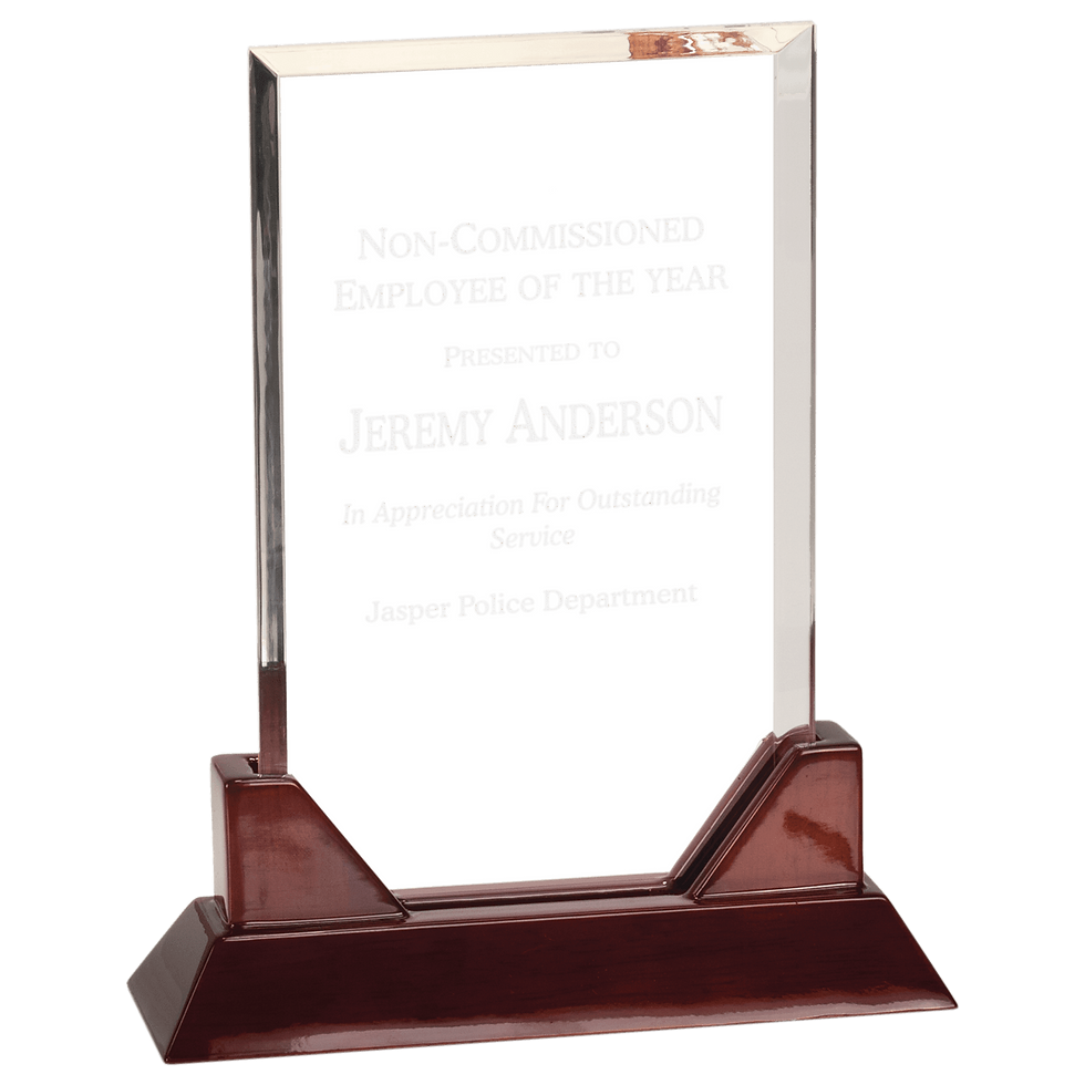7 3/4" Rectangle Prestige Acrylic with Rosewood Piano Finish Base