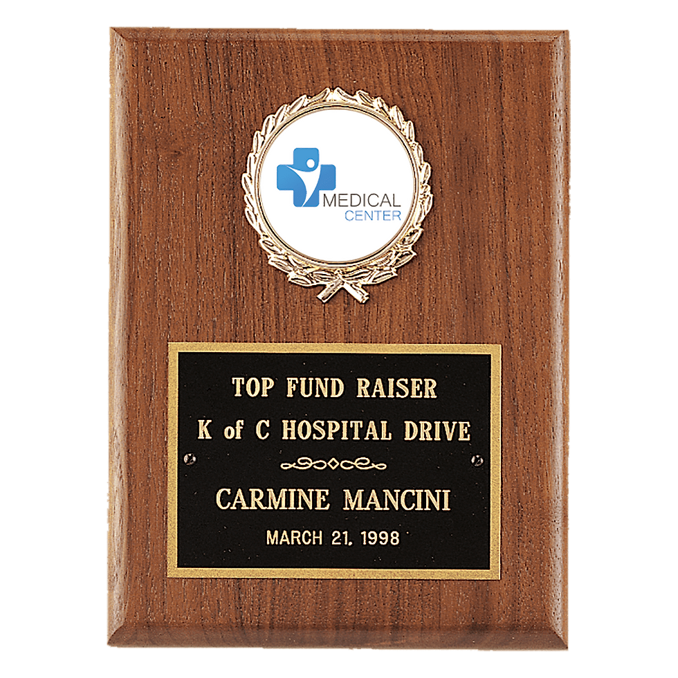 6" x 8" American Walnut Plaque with Gold Border Black Laserable Brass Plate and